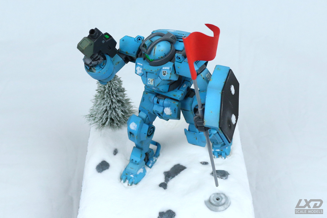 mit denen der Mecha übersäht ist. Offenbar ging der Fahneneroberung eine heftige Schneeballschlacht