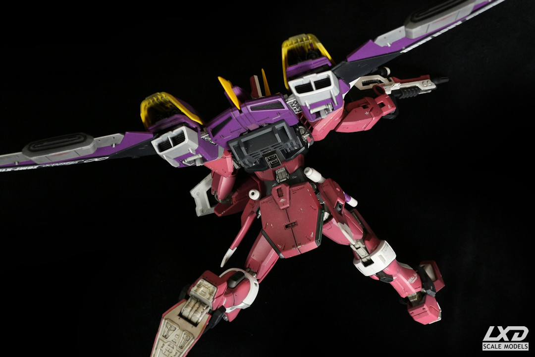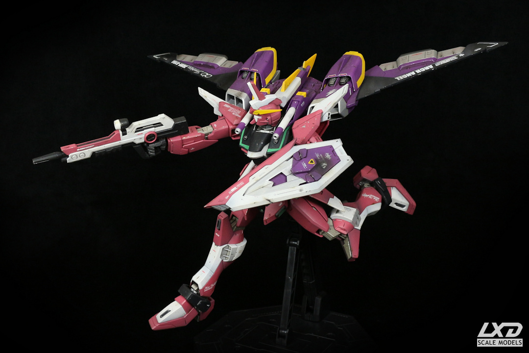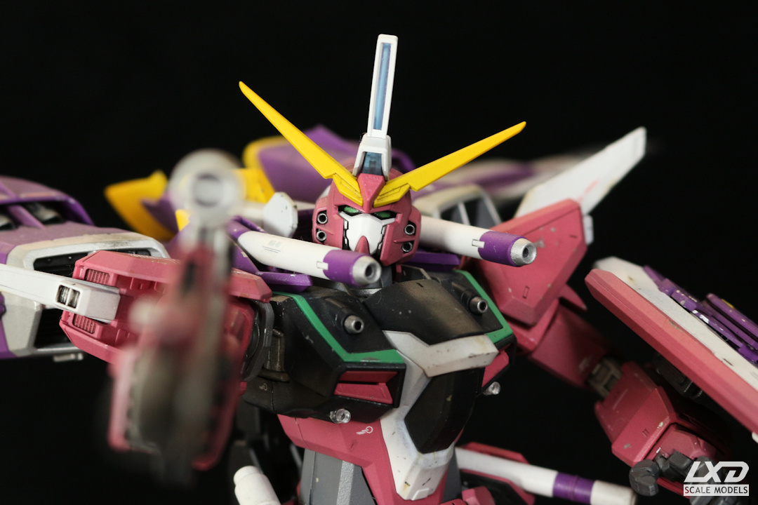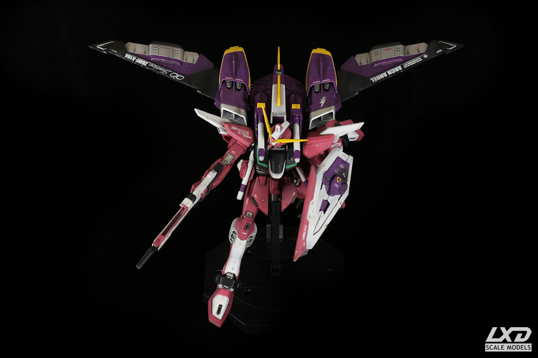 Infinite Justice Gundam aus "Destiny SEED" war mein erstes Master Grade Modell. Der Nachfolger von X10A Justice Gundam wurde mit Acryl-Farben airbrushlackiert und erhielt einige Abnutzungs- und Kampfspuren. Decals stammen von Bandai.