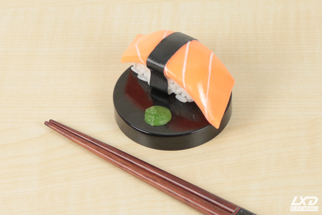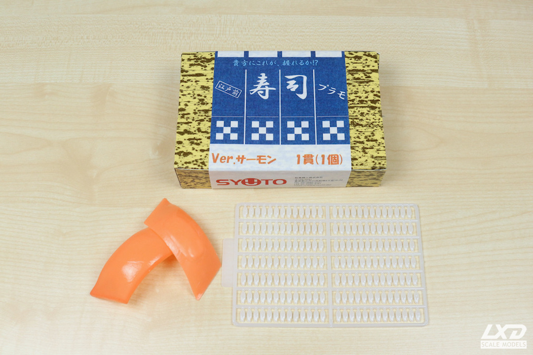 Der Bausatz beinhaltet Teile zum Bau eines Sake Nigiri (Lachs). Weitere Varianten wie Thunfisch Nigiri, Schrimp Nigiri,