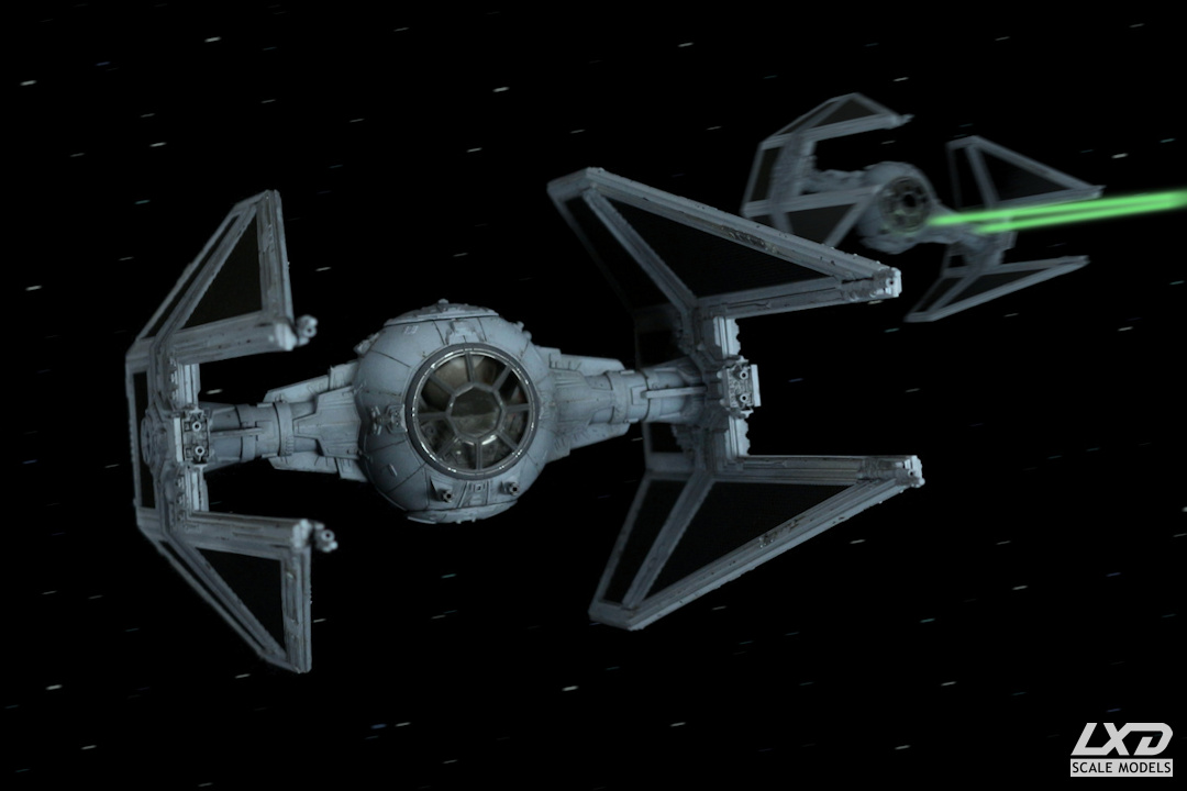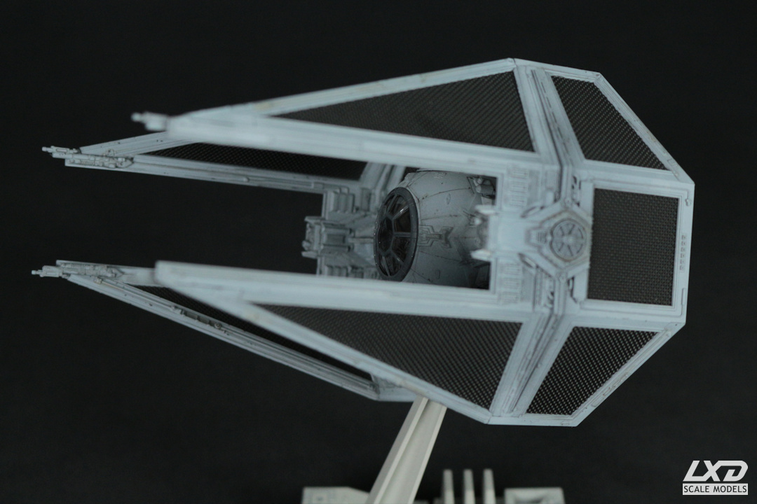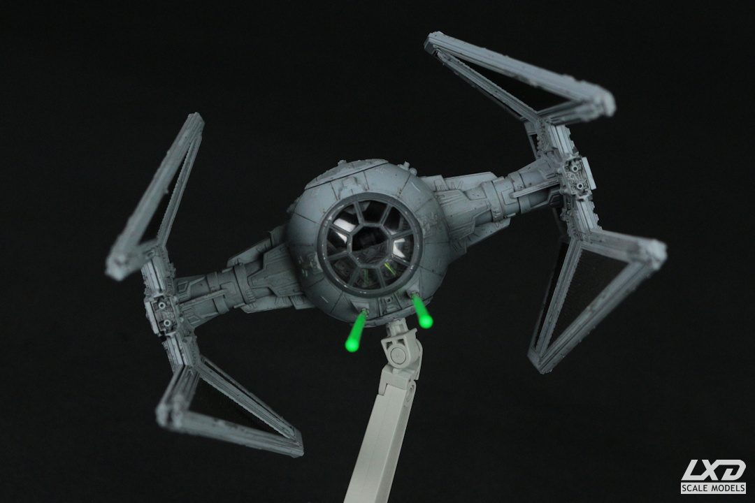 Der imperiale Abfangjäger wurde nach Plan gebaut und mit Acrylfarben airbrushlackiert. Außer einem Pinwash erhielt der TIE nur dezente Alterungsspuren mit dem Pinsel. Beim Bau gab es keinerlei Probleme, die Passgenauigkeit bei diesem Bausatz ist Bandai-typisch hervorragend.