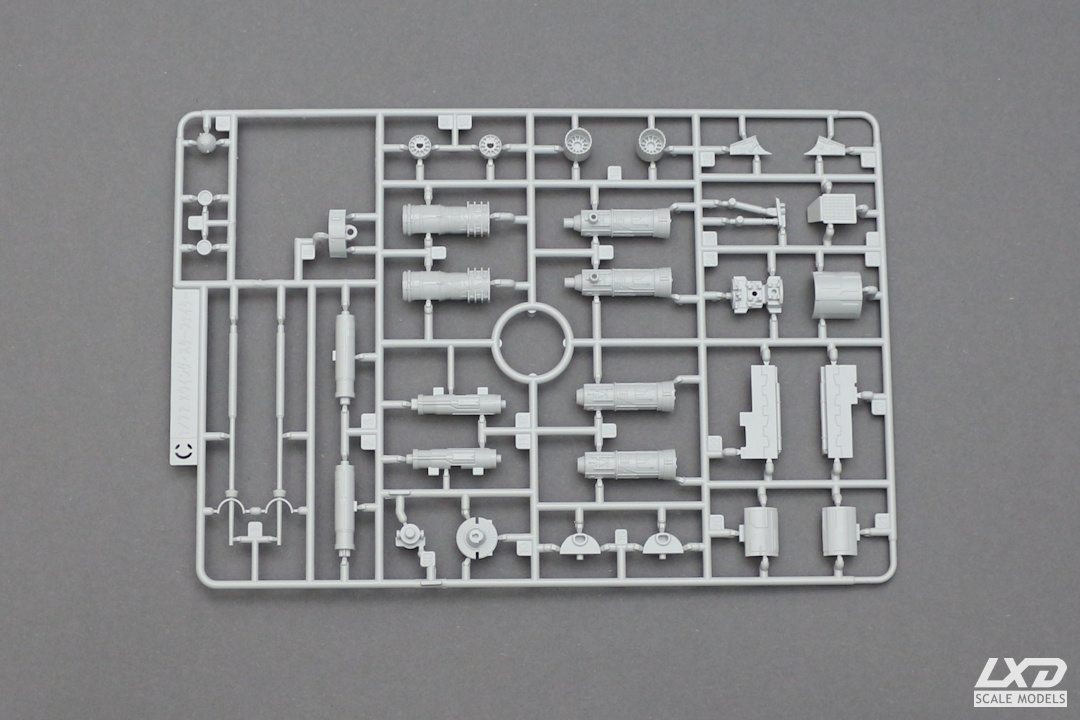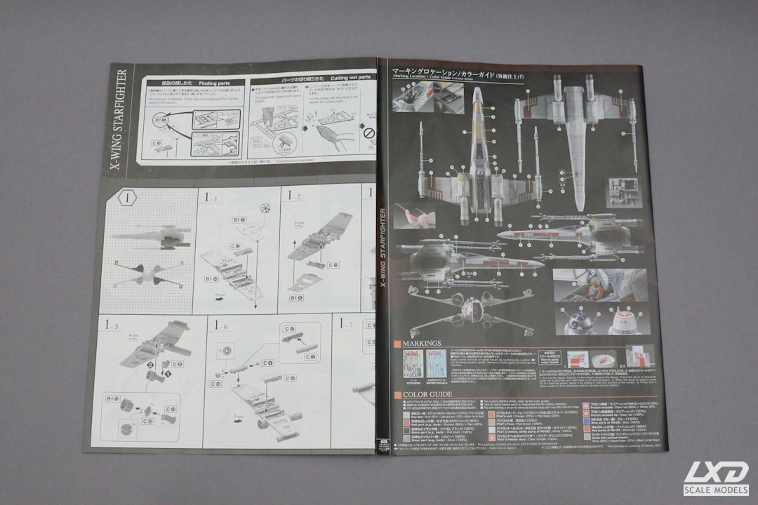 Steckbausatz mit mehrfarbigen Teilen inklusive Ständer mit einer zusätzlichen Sockelplatte, die die Ventilationsöffnung des Todessterns darstellt. Abziehbilder liegen als selbstklebende Sticker und als Nassschiebebilder bei. Das Modell kann entweder mit Cockpitscheiben oder als scheibenloses Studio-Modell gebaut werden, außerdem können die Landebeine ein- oder ausgefahren dargestellt werden.